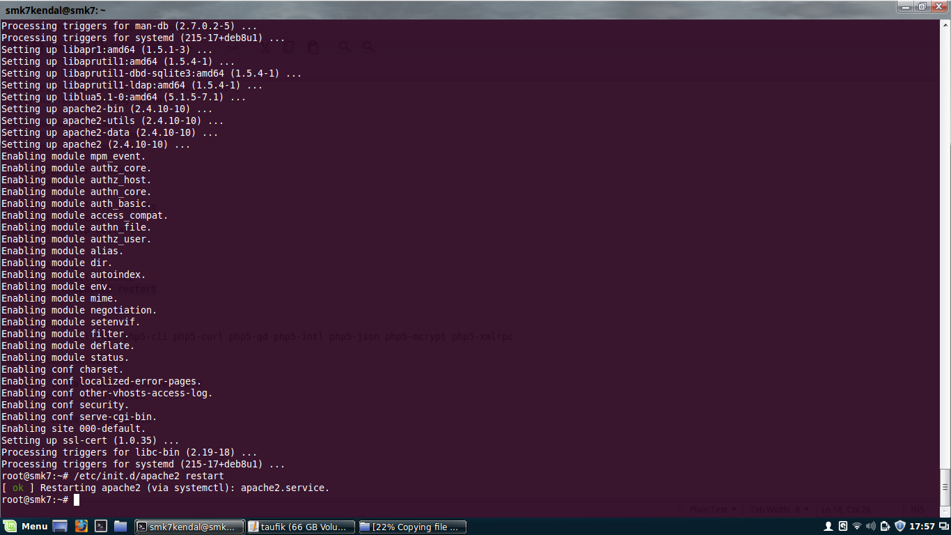 1.ketikan perintah # apt-get install php5 php5-cli php5-curl php5-gd php5-intl php5-json php5-mcrypt php5-xmlrpc